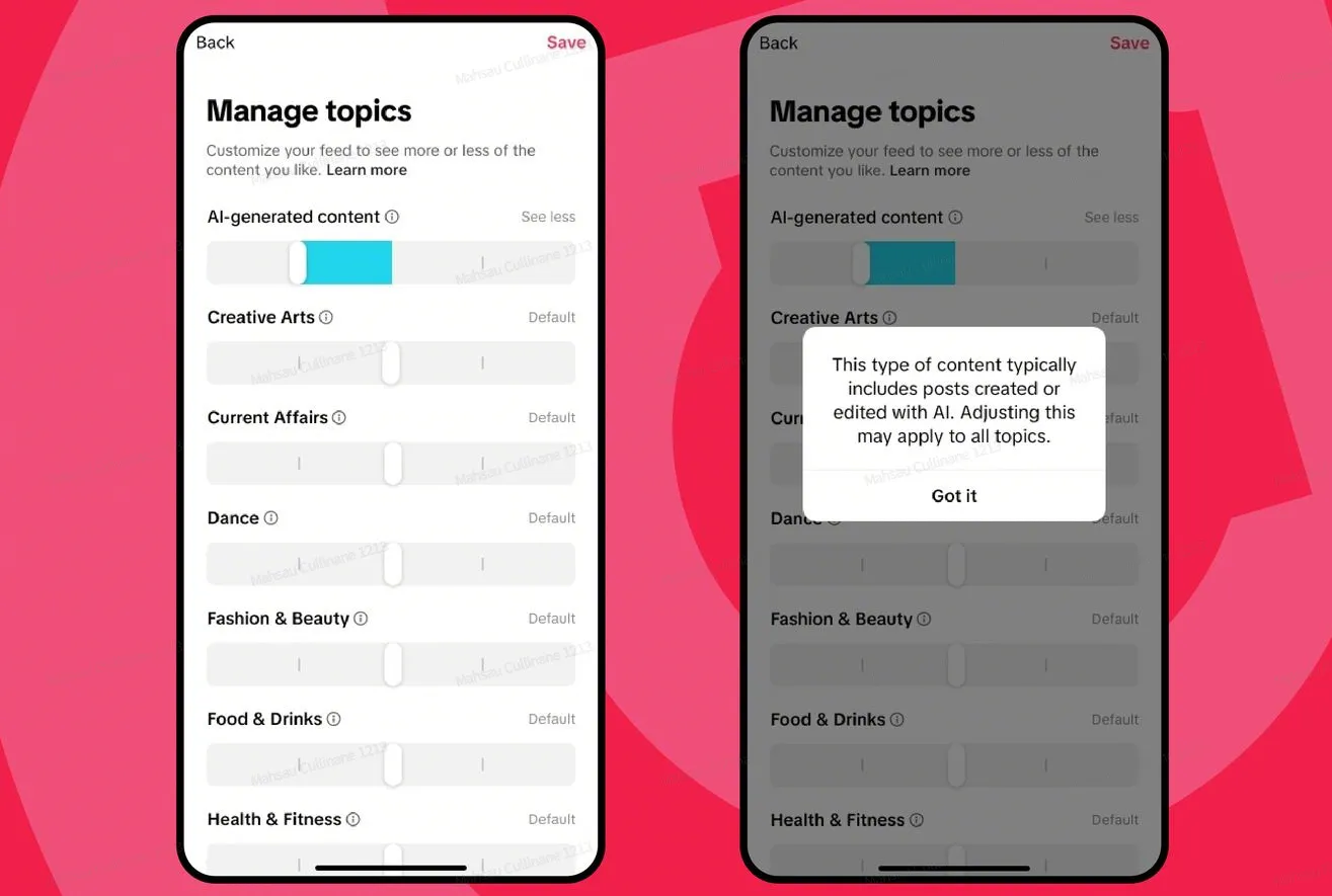 TikTok introduces a new feature that lets users control how much AI-generated content appears on their For You Page. Using the Manage Topics tool, users can choose to see more or less AI content, a trend other social platforms like Instagram may soon adopt.