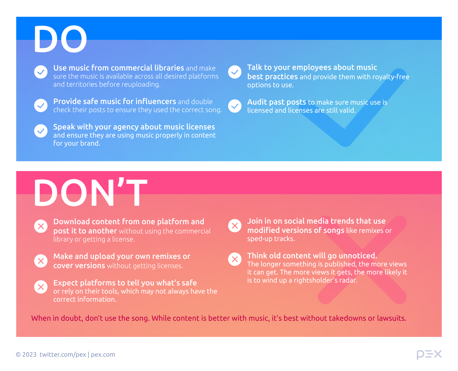 When in Doubt, Don’t Use It: While music can enhance engagement, it is rarely worth a takedown or lawsuit.